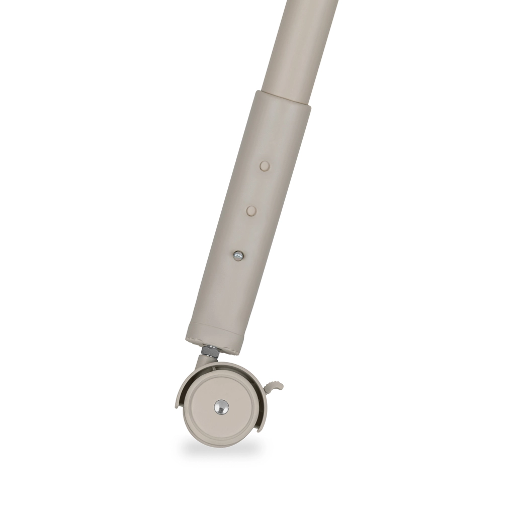 Quattro ruote con freni integrati consentono uno spostamento fluido tra le stanze e un fissaggio stabile del fasciatoio in posizione.