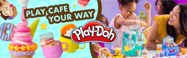 Il set Play-Doh Caffetteria Colorata trasforma la cameretta in una piccola caffetteria piena di fantasia. I bambini possono preparare “caffè”, tè, frappè o milkshake con la pasta da modellare, decorarli con panna e servirli sull’espositore trasparente. Grazie alla ricca dotazione e agli stampi per biscotti, muffin e donut, il divertimento è garantito ancora e ancora.