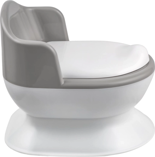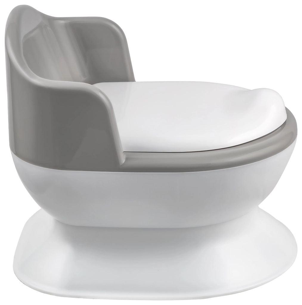 I genitori apprezzeranno la struttura stabile con base ampia e piedini antiscivolo, che aumentano la sicurezza. Lo schienale ergonomico e le maniglie laterali assicurano una seduta confortevole e un facile alzarsi. Il pratico vano portaoggetti per salviette umidificate o carta igienica tiene sempre tutto l’occorrente a portata di mano.