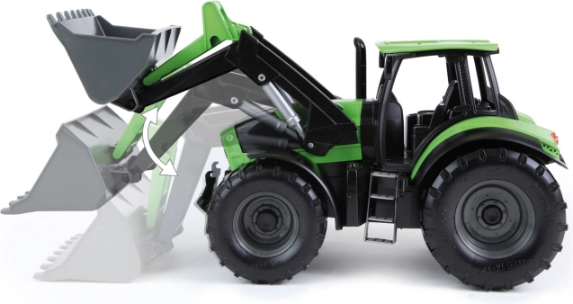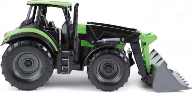 Robusto trattore giocattolo con benna frontale nel design DEUTZ FAHR Agrotron, affascina per la lavorazione realistica in scala 1:15. Dispone di una benna anteriore funzionante, è realizzato in plastica di alta qualità ed è adatto sia per giocare in casa che all'aperto. Lunghezza 45 cm.