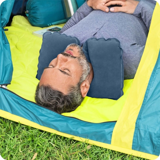 Gonfiaggio rapido e facile sgonfiaggio. Una volta ripiegato entra in tasca: ideale per aereo, auto e zaino da campeggio.