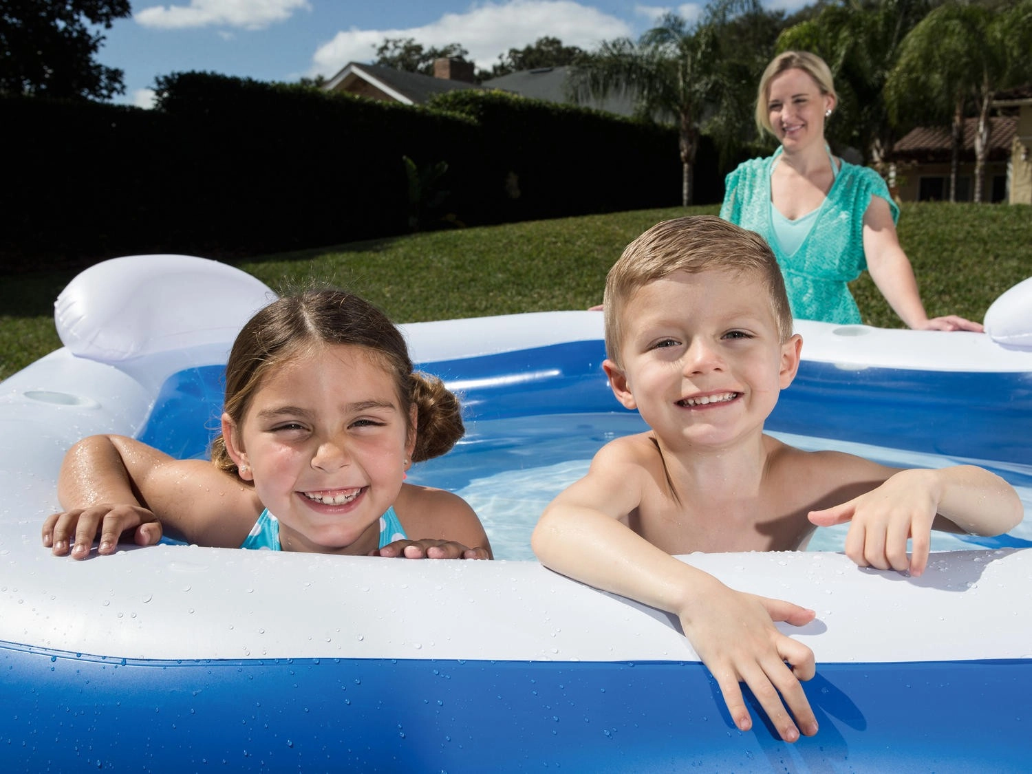 Questa piscina da giardino gonfiabile è ideale per divertimento e relax in famiglia. Le due camere d’aria indipendenti aggiungono stabilità, le sponde rialzate fungono da comodo schienale e le sedute integrate con cuscini offrono momenti di puro relax in acqua fresca. Grazie al vinile robusto, la piscina è resistente, facile da pulire e si adatta perfettamente a qualsiasi giardino.