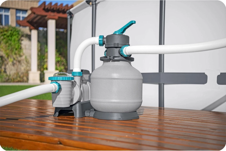 Pianifica i cicli di filtrazione secondo le tue esigenze e lascia che l’unità lavori al tuo posto. La base stabile e robusta garantisce un posizionamento sicuro del sistema accanto alla piscina.