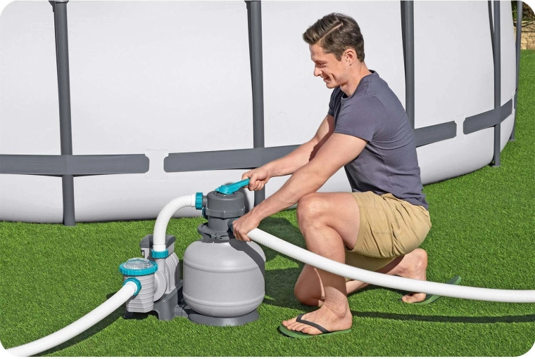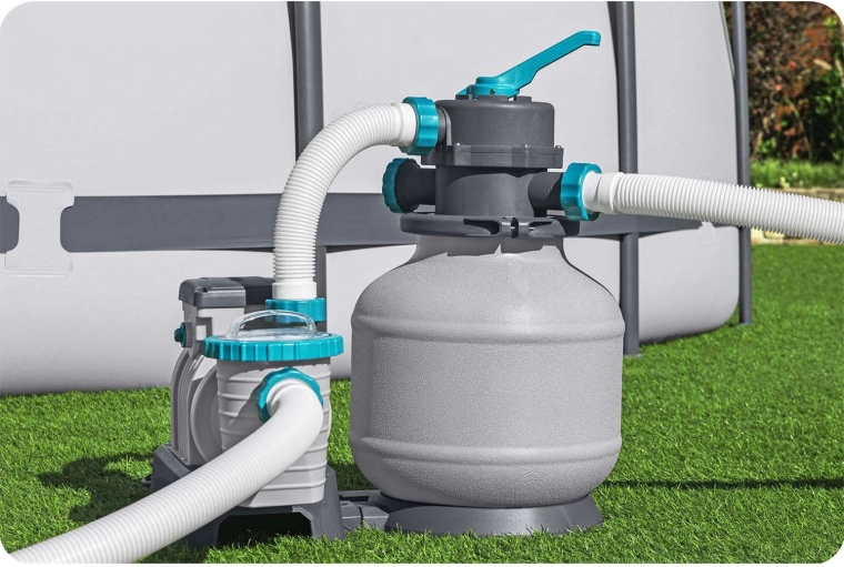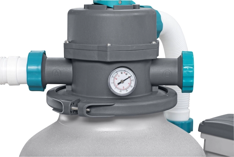 L’intuitiva valvola a 6 vie consente un rapido cambio delle funzioni (filtrazione, controlavaggio, risciacquo, chiusura e altro), mentre il timer integrato automatizza il funzionamento a intervalli impostati. L’installazione semplice con tubi compatibili ti permette di collegare facilmente il sistema alla tua piscina e iniziare subito a filtrare.