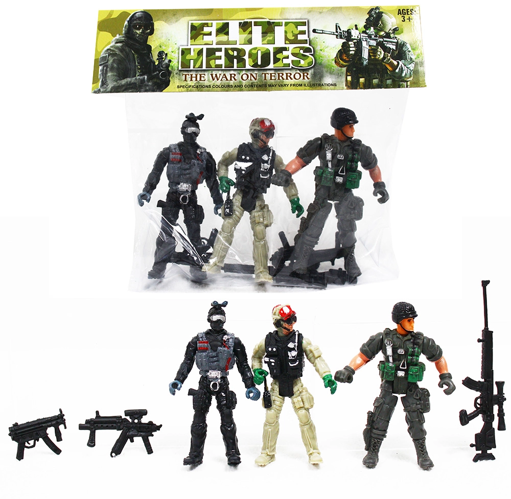 Queste action figure di soldati in confezione da tre colpiscono per i dettagli realistici e il design ben studiato. Ogni personaggio dispone di accessori e articolazioni mobili che permettono di creare avvincenti scenari di gioco e di sviluppare la fantasia dei bambini.