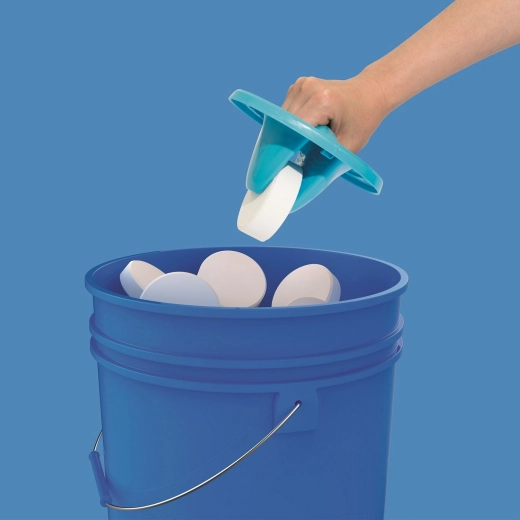 L’anello di dosaggio regolabile consente di impostare con precisione il flusso e quindi la velocità di dissoluzione delle pastiglie. Il manico in gomma integrato nel coperchio assicura un inserimento comodo e sicuro delle pastiglie senza contatto diretto con i prodotti chimici. Il blocco di sicurezza del coperchio a due fasi aiuta a prevenire aperture accidentali, ad esempio da parte dei bambini.
