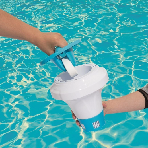 Mantieni l’acqua della piscina cristallina e igienicamente sicura con il dosatore galleggiante BESTWAY. Basta inserire la pastiglia sotto il coperchio e il dosatore rilascerà gradualmente l’agente attivo nell’acqua. Il galleggiante è realizzato in polipropilene resistente e antiruggine, quindi è leggero, galleggia stabilmente in superficie e resiste ai raggi solari e ai prodotti chimici.