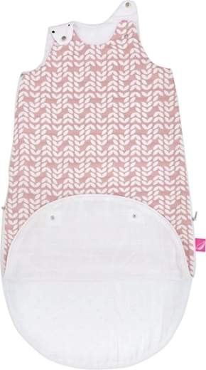 Dettagli studiati come i bottoni a pressione sulle spalle per ridurre l’apertura del collo e il pannello inferiore estensibile con bottoni permettono l’uso in due taglie: 3–6 mesi con la parte inferiore chiusa e 6–18 mesi con quella aperta. Il sacco è realizzato con tre strati di mussola di cotone 100% senza imbottitura: morbido, soffice e delicato sulla pelle sensibile.