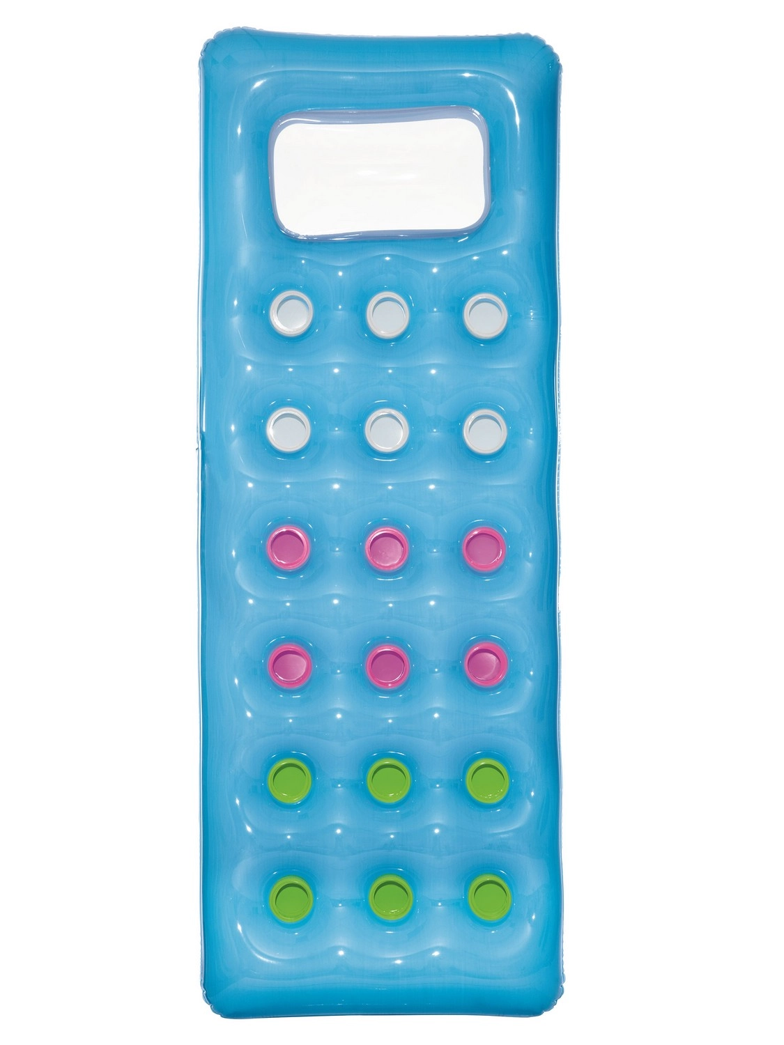 Il materassino gonfiabile per il relax è la scelta ideale per piscina, lago e mare. Grazie alla stabile struttura i-beam e alla distribuzione studiata delle camere, sostiene comodamente e ripartisce meglio il peso. Il cuscino integrato con finestrella trasparente consente di osservare sotto il livello dell’acqua e allo stesso tempo sostiene piacevolmente la testa.