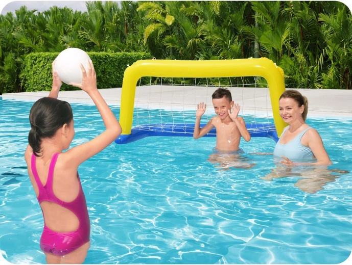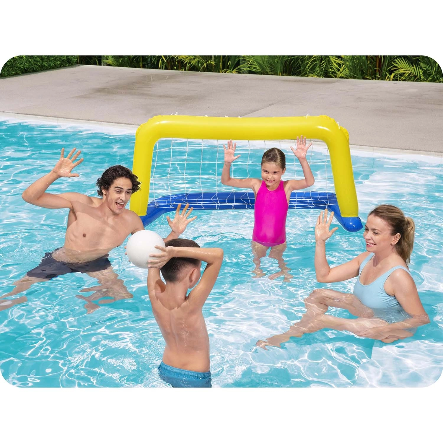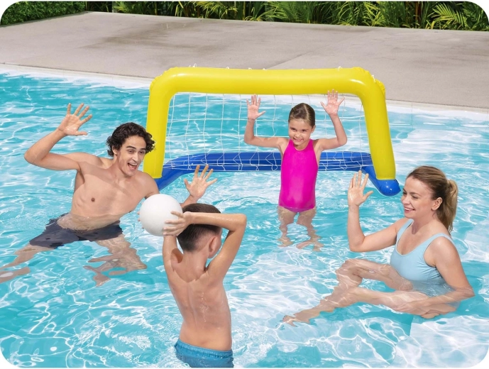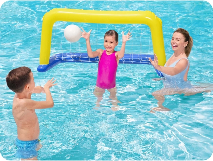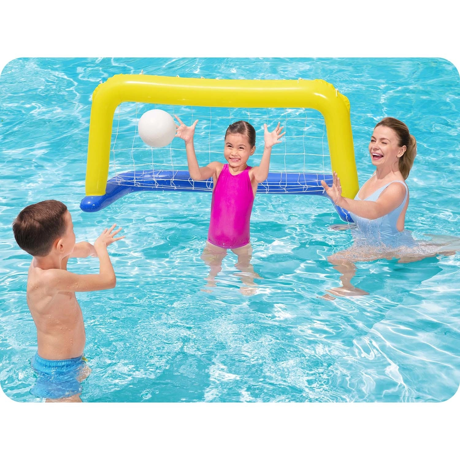 Questa porta gonfiabile Bestway trasforma ogni piscina in un campo da gioco pieno di divertimento. Nella confezione è incluso anche un pallone gonfiabile leggero, così puoi iniziare a giocare subito. La porta è realizzata in vinile (PVC) robusto ed è dotata di una rete in nylon resistente, che intercetta senza problemi ogni tiro.