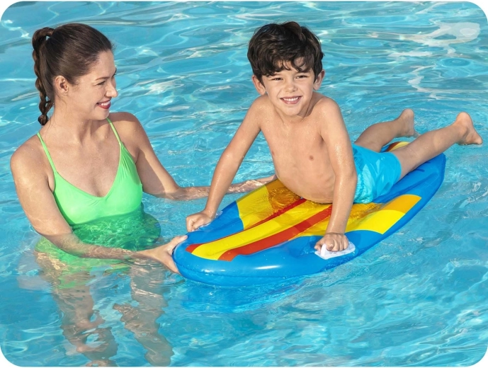 La tavola gonfiabile Bestway è leggera, compatta e ideale per il divertimento acquatico dei bambini. La solida struttura in vinile con canali longitudinali aumenta stabilità e comfort, mentre le due maniglie integrate facilitano la presa e il trasporto. Un’ottima scelta per la piscina o le vacanze.