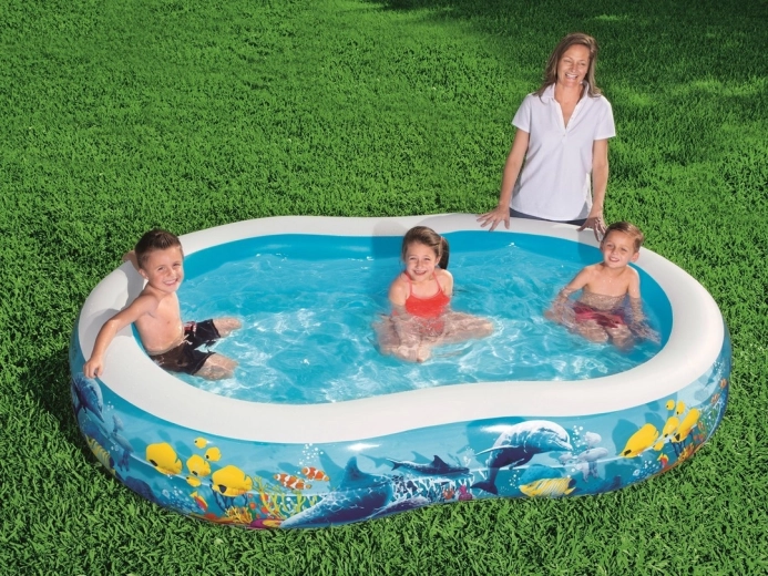 Il design blu e bianco con stampa sottomarina colorata si adatta perfettamente a qualsiasi giardino e conquisterà bambini e adulti. Il facile gonfiaggio tramite grandi valvole e il vinile resistente semplificano manutenzione e utilizzo. Per maggiore tranquillità, nella confezione è inclusa una pratica toppa per piccole riparazioni.