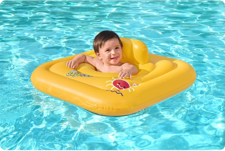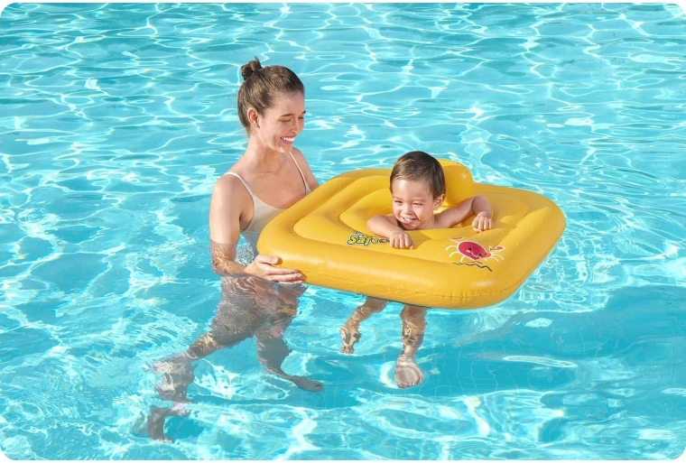 Quattro camere indipendenti garantiscono un galleggiamento solido e una posizione stabile del galleggiante sulla superficie, affinché il bambino si senta al sicuro durante il gioco e l’apprendimento.