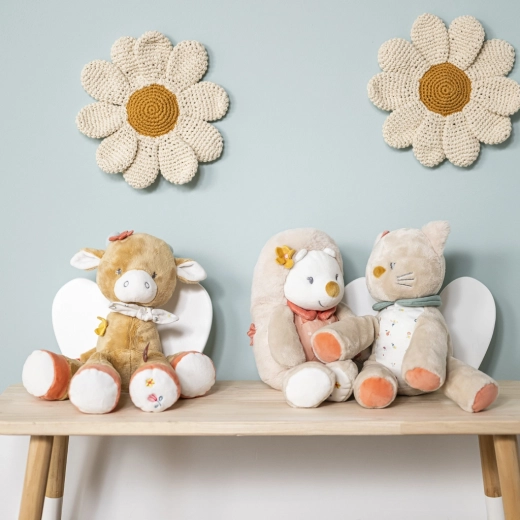 Il peluche morbidissimo con dettagli ricamati, senza piccole parti, garantisce la massima sicurezza anche per i neonati.