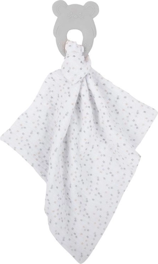 Dolce massaggiagengive a forma di topolino con copertina in mussola extra morbida, che offre al bebè comfort e sollievo durante la dentizione. Silicone senza BPA, superficie testurizzata per massaggiare le gengive e facile separazione del massaggiagengive dalla copertina garantiscono igiene e uso sicuro. Dimensione ideale per piccole manine.