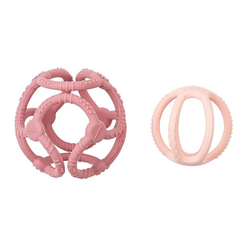 Scopri il delicato e sicuro massaggiagengive NATTOU a forma di due palline, utilizzabili insieme o separatamente. Le diverse texture stimolano il tatto e aiutano a calmare le gengive irritate, mentre la struttura leggera e flessibile facilita la presa anche alle manine più piccole.