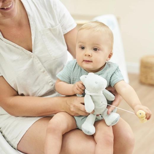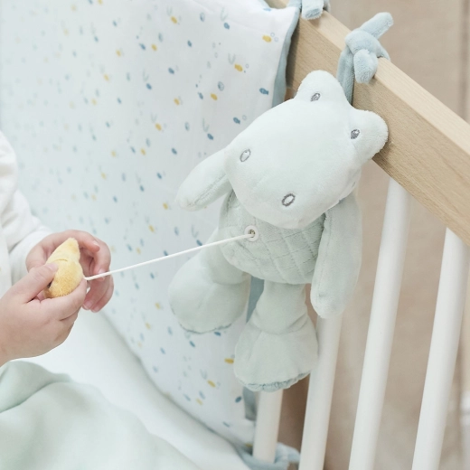 Tirando il cordino si attiva la delicata ninna nanna La‑Le‑Lu, che calma il bebè e lo aiuta ad addormentarsi più facilmente.
