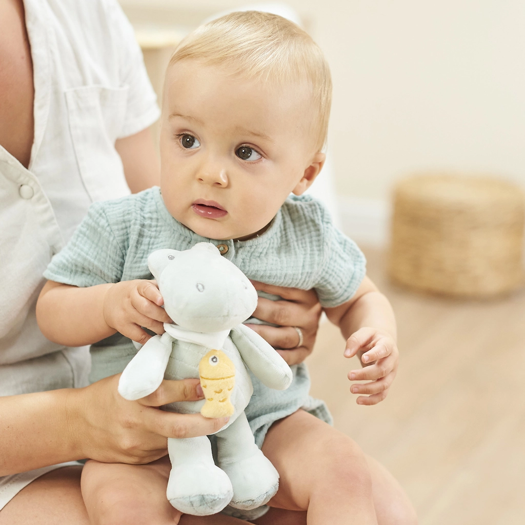 Il coccodrillo musicale di peluche NATTOU Romeo è un tenero compagno per il lettino e in viaggio. I materiali morbidissimi e le cuciture curate garantiscono coccole in sicurezza, mentre la dolce melodia La‑Le‑Lu aiuta a creare calma e benessere prima della nanna. Grazie agli elementi studiati per la presa, anche le manine piccole possono afferrarlo con facilità.
