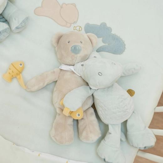Il coccodrillo di peluche ROMEO da 32 cm è un compagno morbidissimo per la culla e in viaggio. I dettagli studiati e le diverse texture offrono tanti stimoli alle manine dei bambini, mentre la superficie soffice regala un tocco rassicurante nelle prime settimane e mesi di vita.