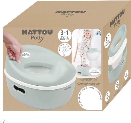 Il vasino NATTOU Potty 3-in-1 è una soluzione intelligente per ogni fase dell’apprendimento alla toilette. Inizia come vasino compatto con seduta confortevole e parte anteriore rialzata anti-schizzo. Quando il bambino è pronto, utilizza semplicemente il riduttore per il WC standard insieme allo sgabellino, che offre l’altezza e la stabilità necessarie.