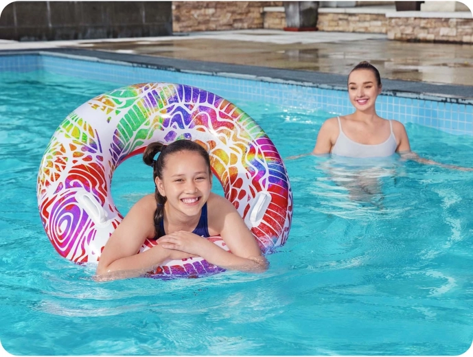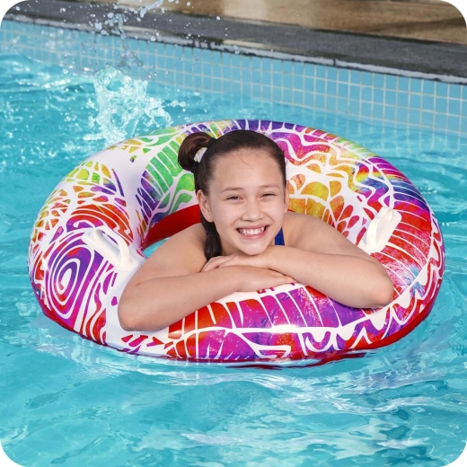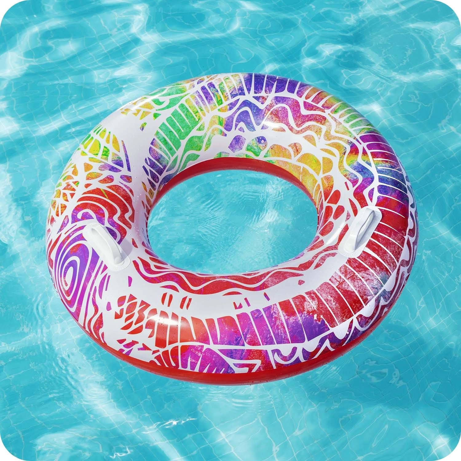 Questa ciambella da nuoto dal design alla moda, in PVC resistente, sopporta sole e acqua salata, risultando un’ottima scelta sia per la piscina che per la spiaggia. Il grande diametro di 91 cm offre un sostegno confortevole e una migliore galleggiabilità per bambini dai 10 anni in su.