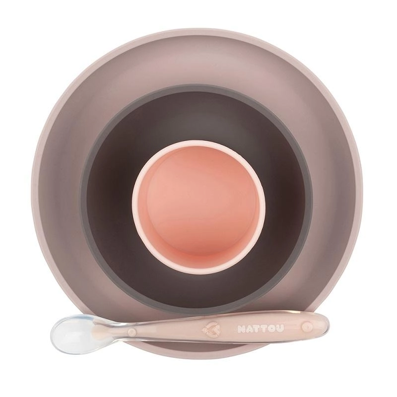 Scopri un pasto comodo e sicuro con il set pappa Nattou. Il silicone 100% morbido e flessibile è piacevole al tatto, infrangibile e, grazie alle ventose antiscivolo su ciotola e piatto, rimane ben fermo su superfici pulite del tavolo o del seggiolone. Il set è ideale dalle prime pappe (4+ mesi) fino all’allenamento all’autonomia a 12–36 mesi.