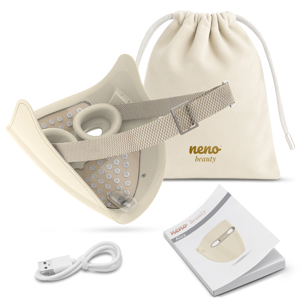 Scopri un’efficace fototerapia domestica con la maschera Neno Beauty Alva. La combinazione di luce rossa, rosso scuro, blu e vicino infrarosso aiuta a uniformare l’incarnato, levigare le piccole rughe, migliorare l’elasticità e lenire le irritazioni. Le istruzioni vocali e l’unico pulsante semplificano l’uso, mentre il timer controlla la corretta durata della sessione.