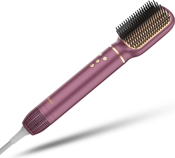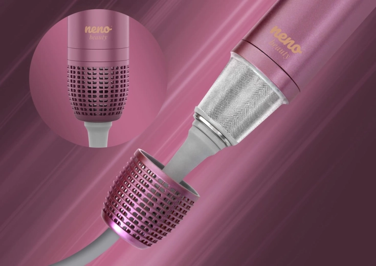 Neno Beauty Vio è una soluzione universale per lo styling quotidiano. I cinque accessori intercambiabili coprono tutto: dall’asciugatura express alla levigatezza, fino al volume e ai ricci morbidi. La tecnologia ionica rilascia fino a 800 milioni di ioni negativi, riduce l’elettricità statica e lascia i capelli morbidi, lucidi e disciplinati. Il funzionamento silenzioso (circa 63 dB) e la memoria dell’ultima impostazione aumentano il comfort d’uso.