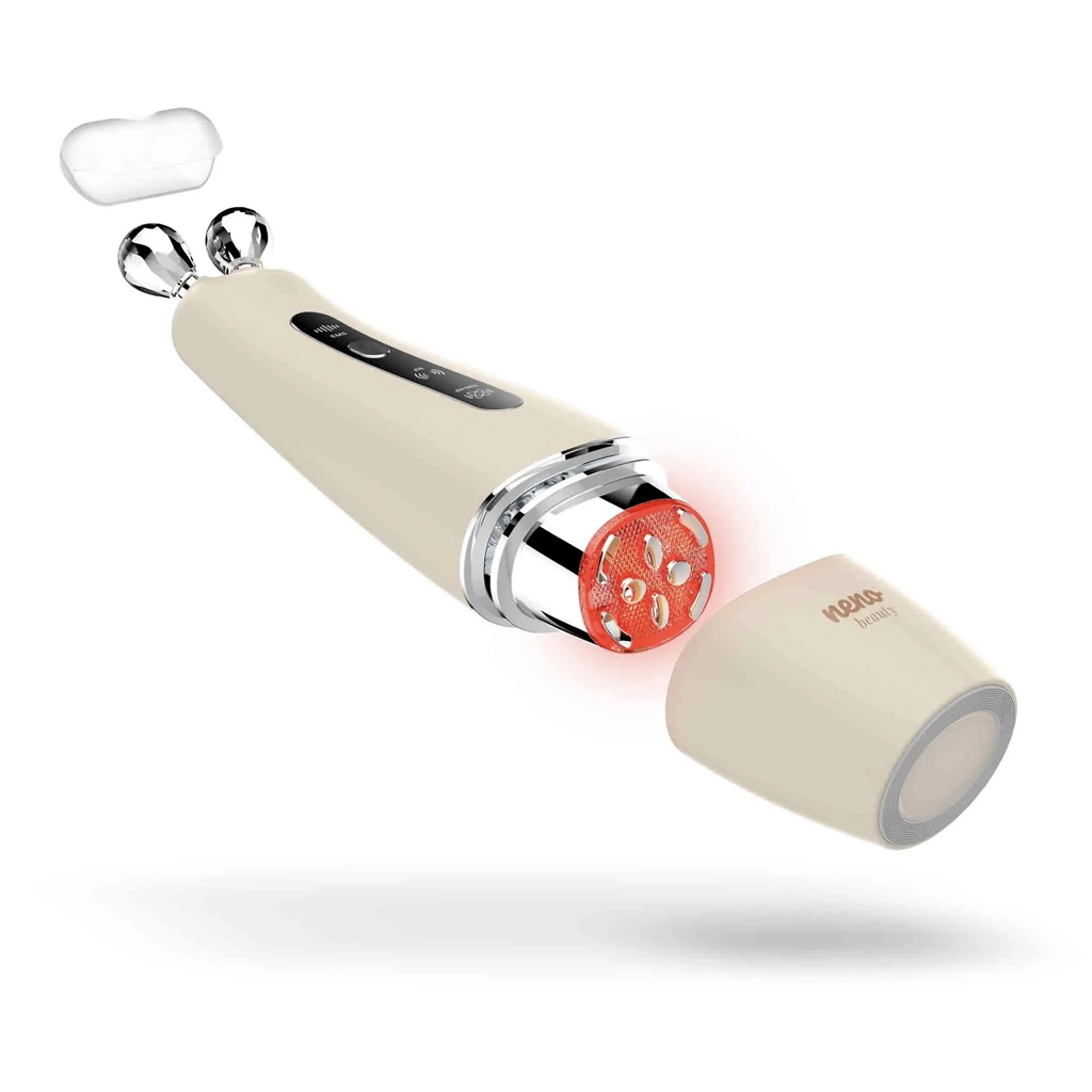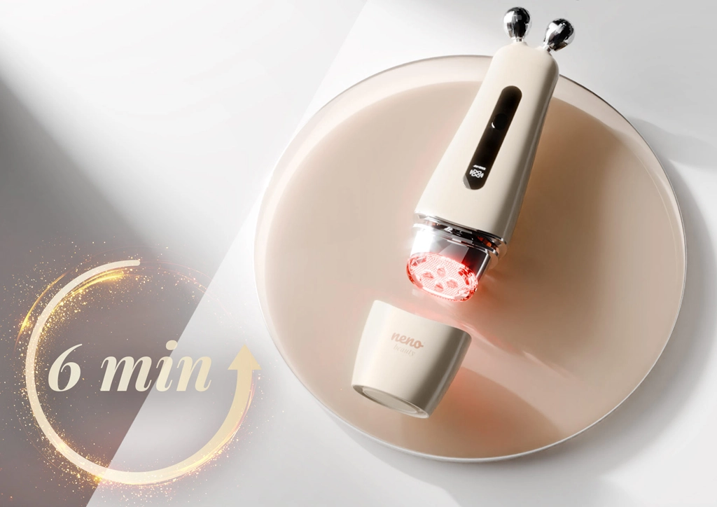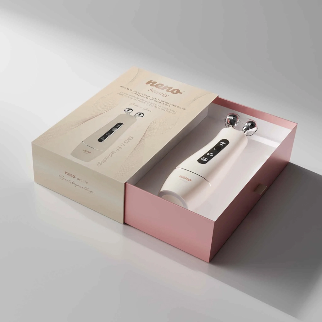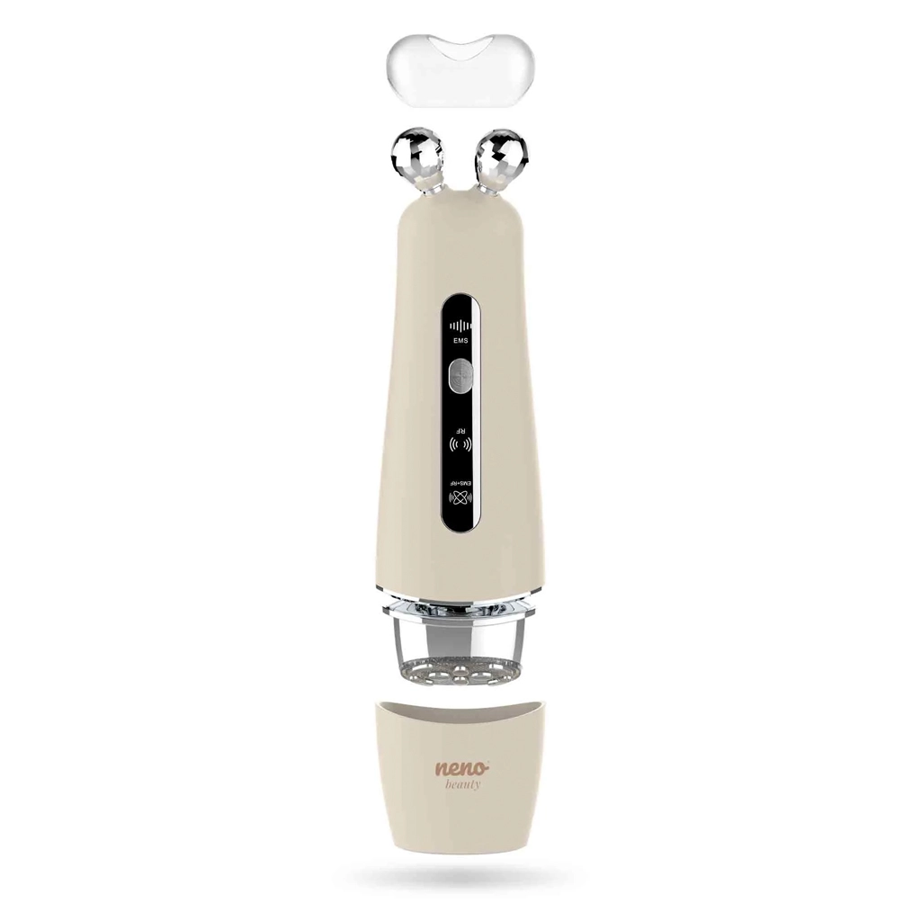Neno Beauty Algo è un dispositivo cosmetico multifunzionale per uso domestico che aiuta a definire i contorni, favorire la produzione di collagene e migliorare l’elasticità della pelle. Combina le tecnologie avanzate EMS e RF con terapia LED e vibrazioni soniche per offrire un trattamento mirato ma delicato. Grazie alle due testine intercambiabili – a diamante e piatta con otto punti massaggianti – adatti facilmente la cura al tipo e alle esigenze attuali della pelle.
