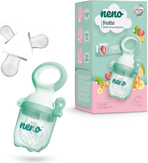 Neno Frutta è una soluzione intelligente per introdurre le pappe: dai primi pezzetti di frutta e verdura fino ai cibi più morbidi. La morbida rete in silicone lascia passare solo piccoli frammenti, così il bambino esplora nuovi sapori in modo sicuro e senza stress. La chiusura antibatterica mantiene il beccuccio igienicamente pulito a casa e in viaggio.