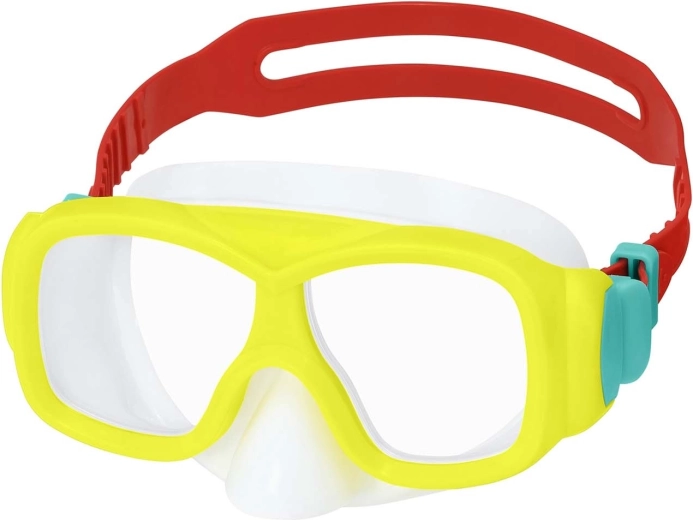 Questa maschera da sub Bestway giallo‑rossa è progettata per giovani nuotatori e piccoli avventurieri. Le lenti in policarbonato con rivestimento UV offrono resistenza agli urti e una visione chiara, mentre la gonna morbida si adatta comodamente alla forma del viso e aiuta a prevenire le infiltrazioni d’acqua.
