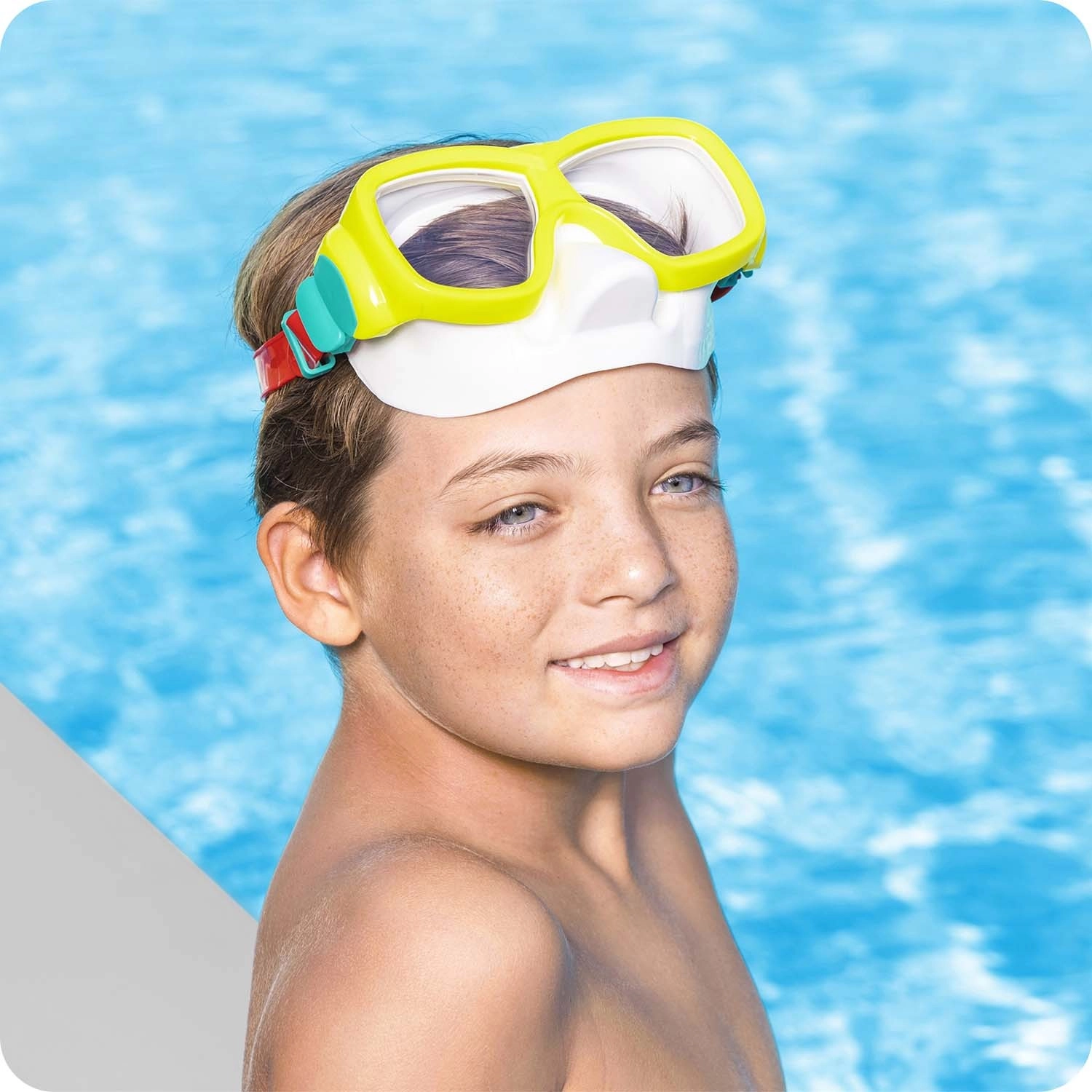 Grazie al cinturino in silicone regolabile, la maschera rimane salda e sicura durante il nuoto e i giochi in acqua. La taglia universale per bambini, senza componenti in lattice, è la scelta ideale per pelli sensibili e per il divertimento acquatico quotidiano.