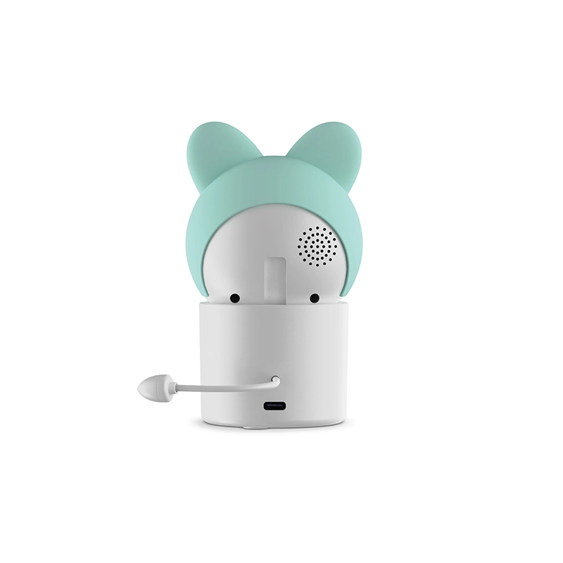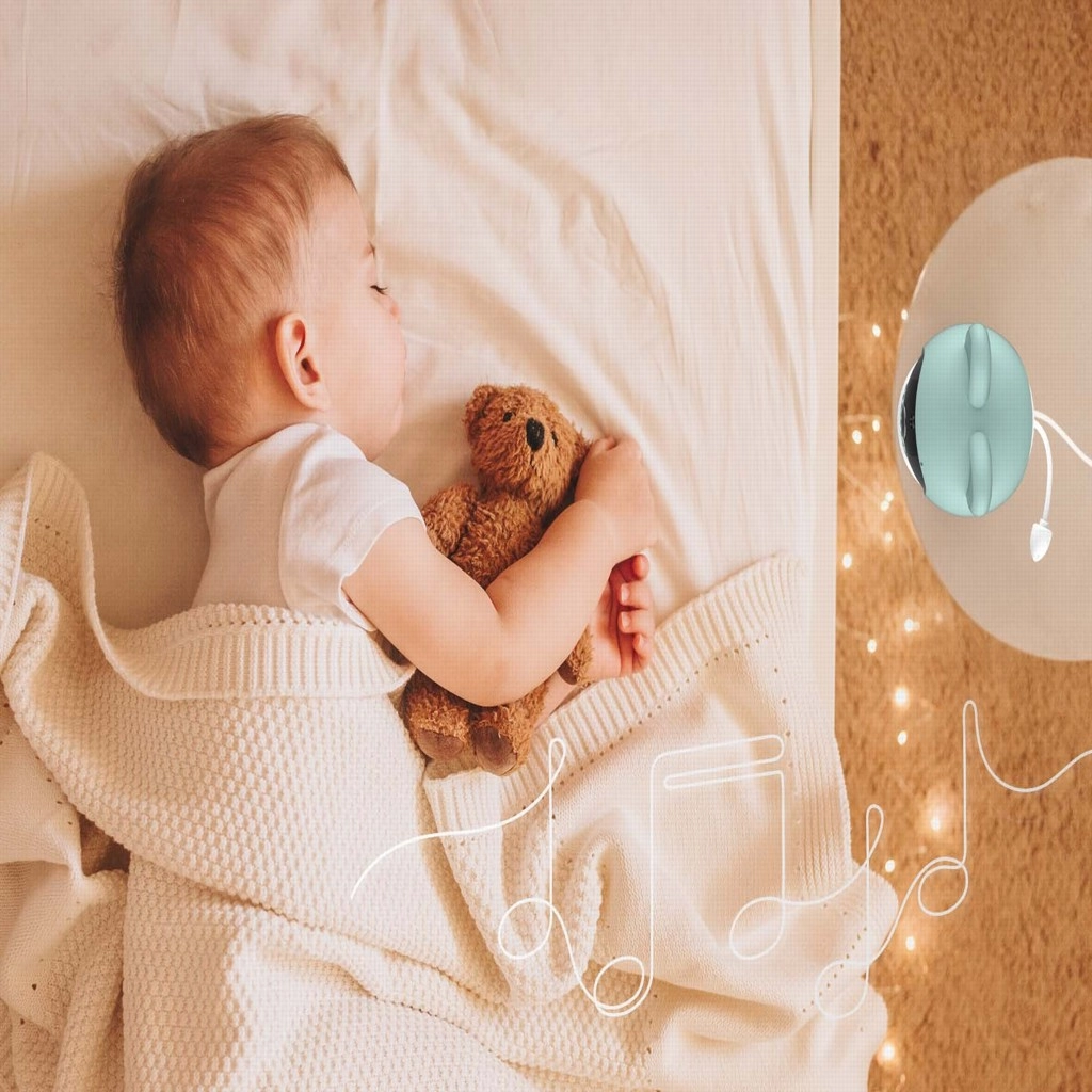 Installazione semplice con supporto flessibile che consente il montaggio a parete, soffitto o sul lettino. Il design minimalista con cover in silicone a forma di orsetto è sicuro e perfetto per la cameretta.