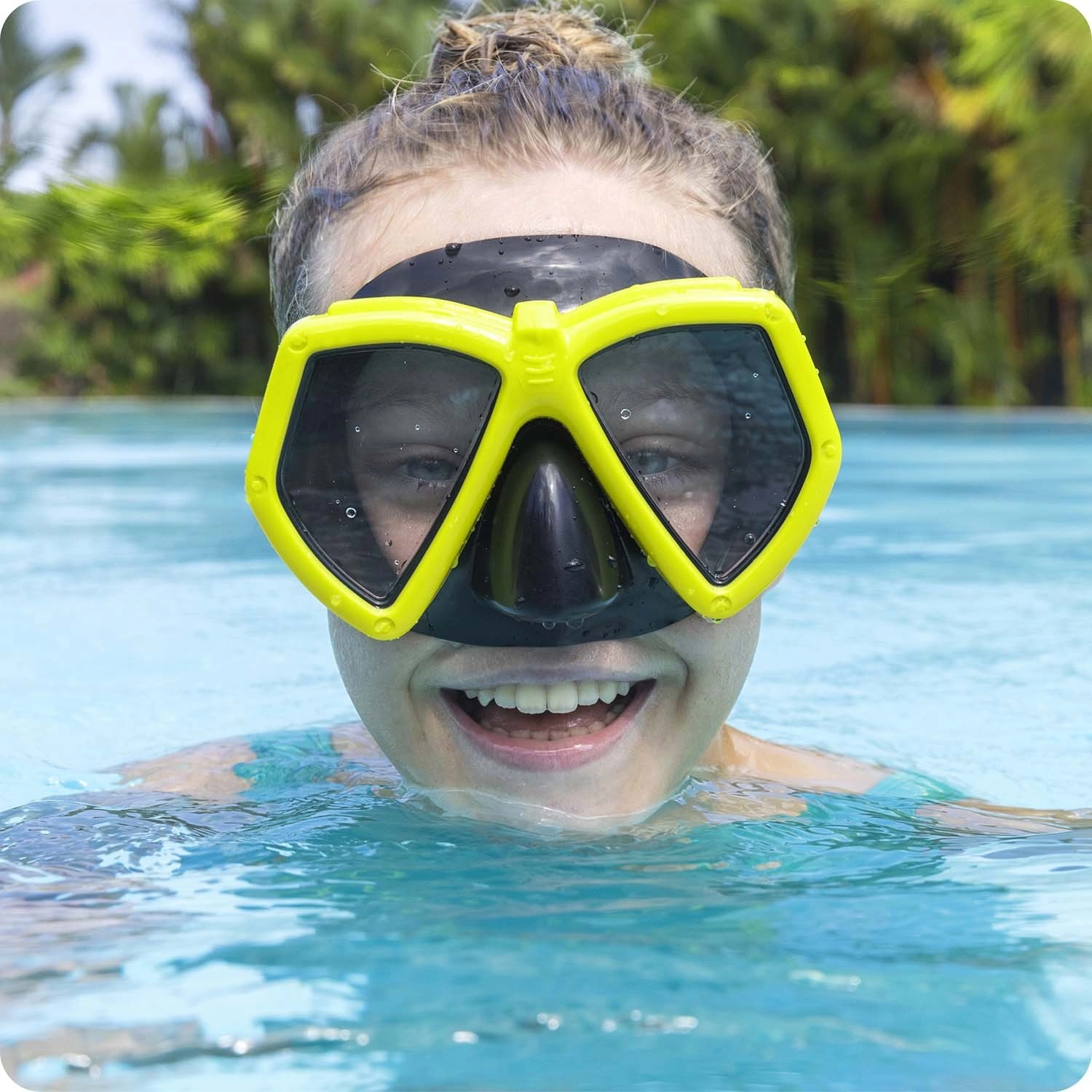Cerchi una maschera affidabile e confortevole per nuoto e snorkeling? La maschera subacquea gialla Bestway è progettata in taglia universale, sigilla in modo efficace sul viso e riduce al minimo le infiltrazioni d’acqua. Le lenti in policarbonato con protezione UV offrono una visione chiara sia sott’acqua che al sole.