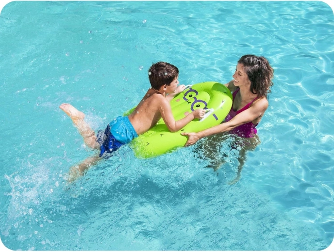La tavola è leggera, facile da trasportare e occupa poco spazio in valigia: ideale per le vacanze, la piscina e lo stabilimento balneare. Nella confezione è inclusa anche una pratica toppa, così eventuali piccoli danni si risolvono rapidamente e il divertimento può continuare.