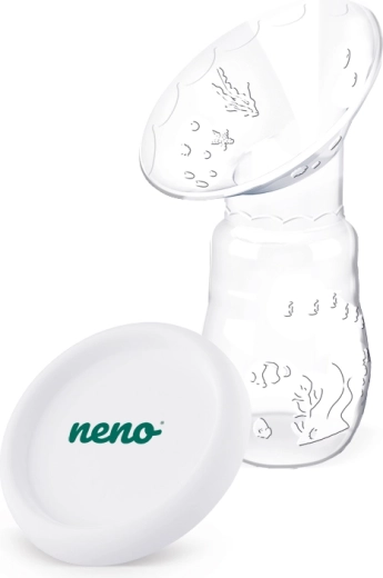 Il pratico collettore in silicone Neno Leite raccoglie delicatamente il latte materno dal seno con cui non stai allattando. Grazie al sottovuoto naturale funziona come un tiralatte manuale, risparmia ogni goccia e aiuta a mantenere seno e biancheria asciutti. Ha una capacità di 100 ml, aderisce comodamente, si pulisce con facilità e con il coperchio consente di conservare il latte in modo sicuro in frigorifero.