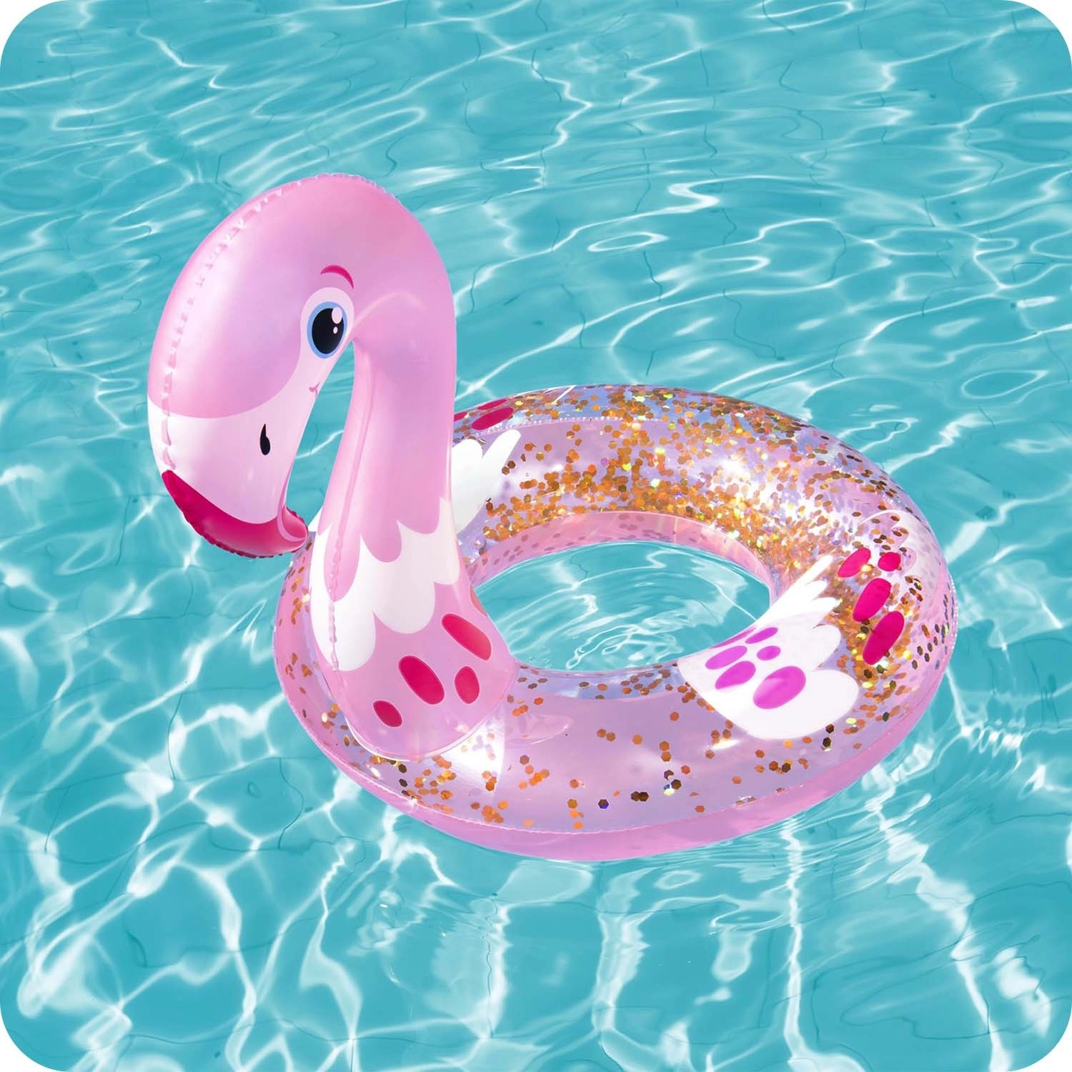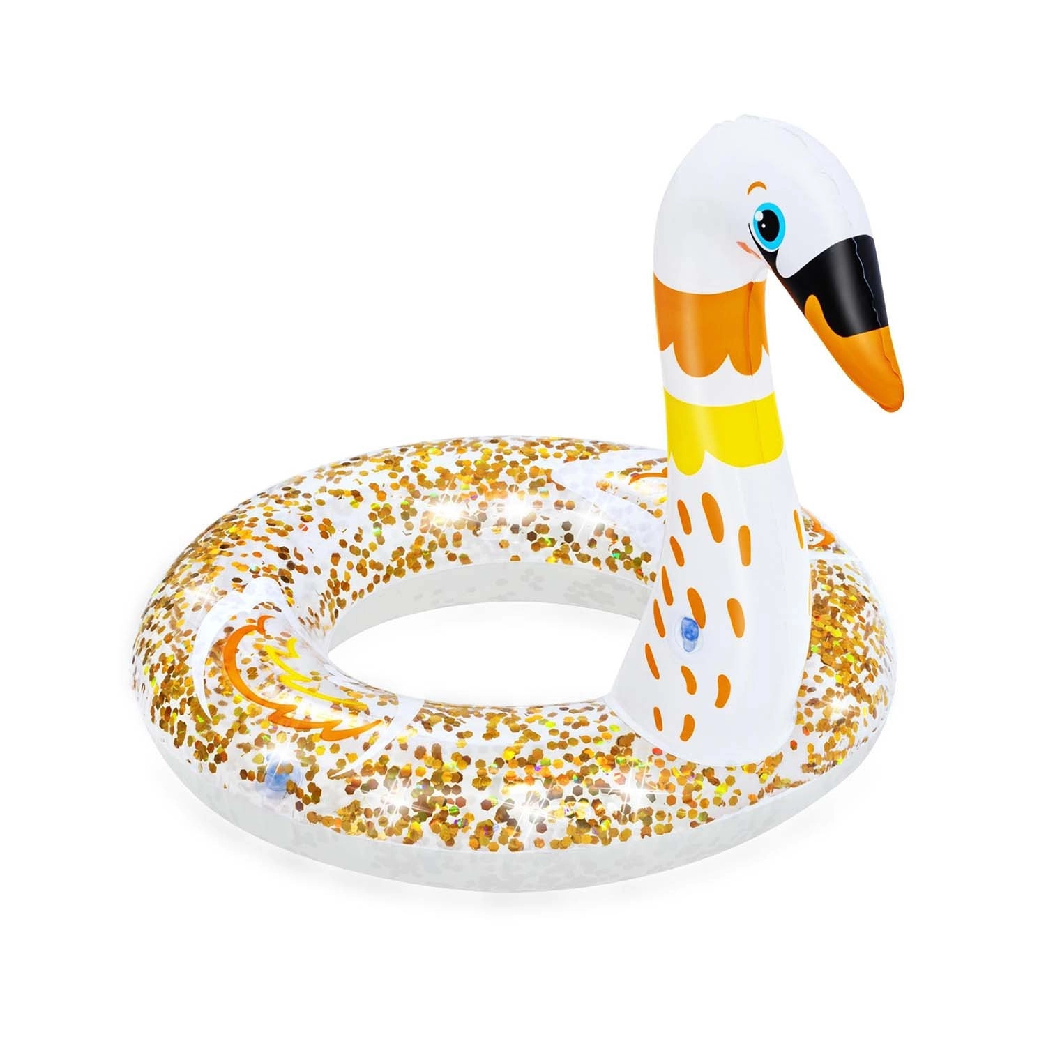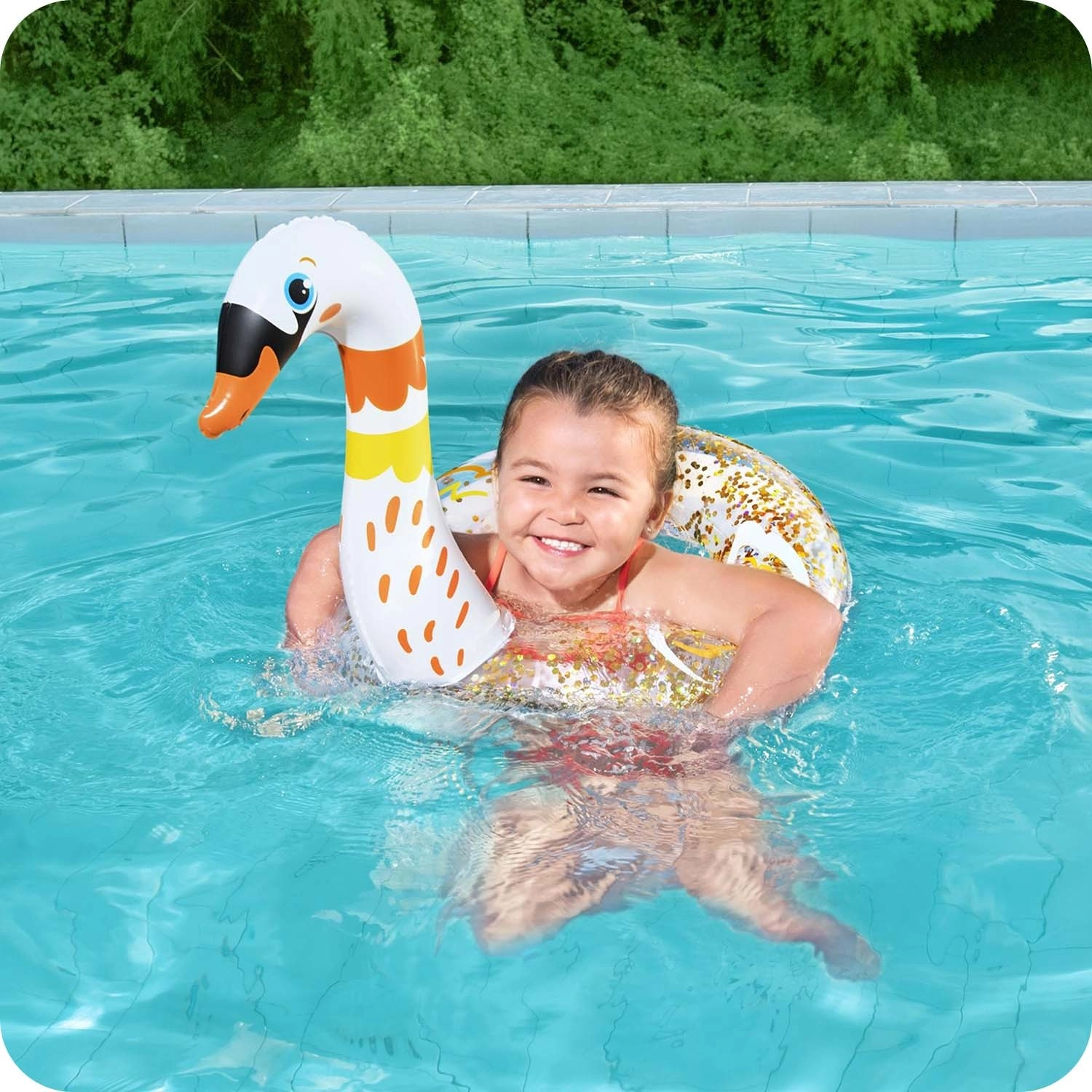 L’anello gonfiabile BESTWAY trasforma ogni momento in acqua in puro divertimento. La forma realistica di cigno o fenicottero cattura subito l’attenzione e invoglia i piccoli a muoversi in acqua. Le parti trasparenti con glitter dorati brillano splendidamente al sole e donano all’anello un aspetto unico.