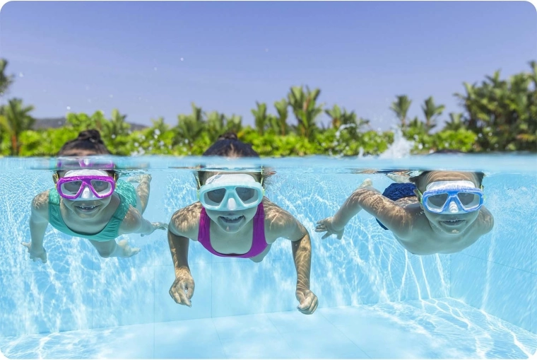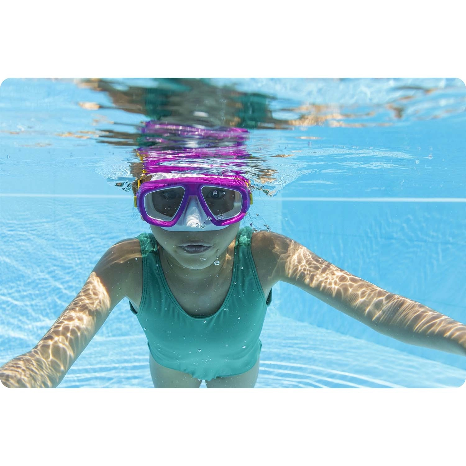Grazie al cinturino doppio in silicone regolabile, la maschera resta ben salda anche durante tuffi e giochi in acqua. La struttura leggera (solo 0,118 kg) è comoda anche per uso prolungato e i materiali senza lattice sono adatti alle pelli sensibili.