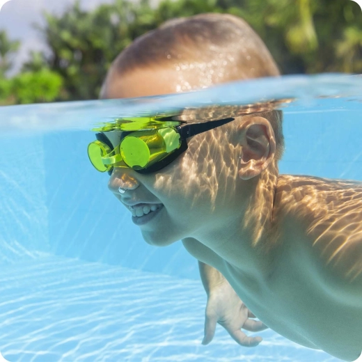 Grazie alle lenti resistenti ai raggi UV, sono adatti anche alle piscine all’aperto. I materiali ipoallergenici senza lattice riducono al minimo il rischio di irritazioni, mentre la struttura robusta e il campo visivo nitido aiutano i bambini a vedere meglio sott’acqua e a concentrarsi sul nuoto.