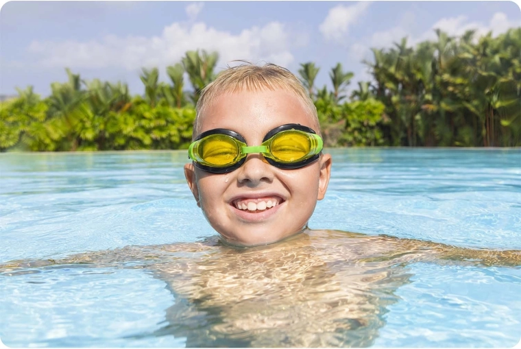 Cerchi occhialini da nuoto affidabili per bambini, adatti sia alla piscina che al nuoto all’aperto? Questi occhialini BESTWAY con lenti dal tono giallo proteggono gli occhi dall’acqua e dal sole, mentre la morbida guarnizione e il cinturino in silicone regolabile assicurano una vestibilità stabile e confortevole. Ideali per bambini dai 7 anni in su, per allenamento, gioco e i primi passi nel nuoto.