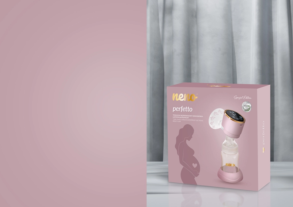 Neno Perfetto è un tiralatte elettrico impermeabile premium con tre fasi di estrazione e 9 livelli di intensità per ogni fase. Grazie alla protezione IPX6 puoi sciacquarlo in sicurezza sotto l’acqua corrente e usarlo anche sotto la doccia. Il cuscinetto in silicone morbido e delicato sulla pelle, la ricarica rapida USB‑C e la lunga autonomia fino a 120 minuti lo rendono la scelta ideale per un’estrazione comoda, efficiente e igienica, senza BPA.