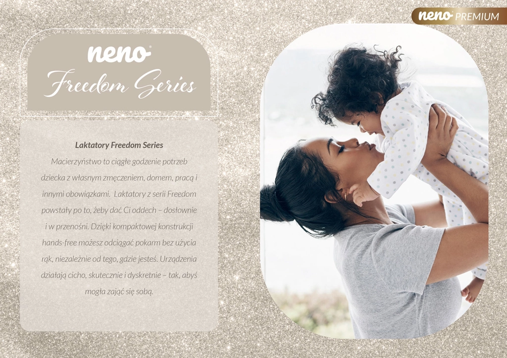 Neno Camino Pro della serie Freedom combina la potenza di un tiralatte elettrico doppio con un corpo leggero e wireless e con scudi ergonomici e morbidi. La modalità a tre fasi imita la suzione del bambino – dalla delicata stimolazione all’estrazione profonda fino alla combinazione di entrambe – per maggiore resa e supporto alla lattazione. Timer integrato, display chiaro e controlli touch permettono di avere tutto sotto controllo con una sola mano.