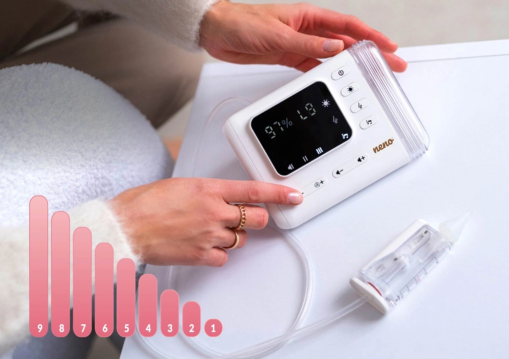 Alleviate raffreddore e congestione in modo rapido e igienico. Neno Nariz combina una aspirazione potente ma delicata con flusso d’aria dinamico, rimuovendo efficacemente il muco senza irritare le mucose sensibili. Con 9 livelli di potenza adattate facilmente l’intensità alla densità delle secrezioni e allo stato attuale di raffreddore o allergia. Due tecniche di aspirazione – contatto diretto o leggera distanza – aumentano il comfort del bambino.