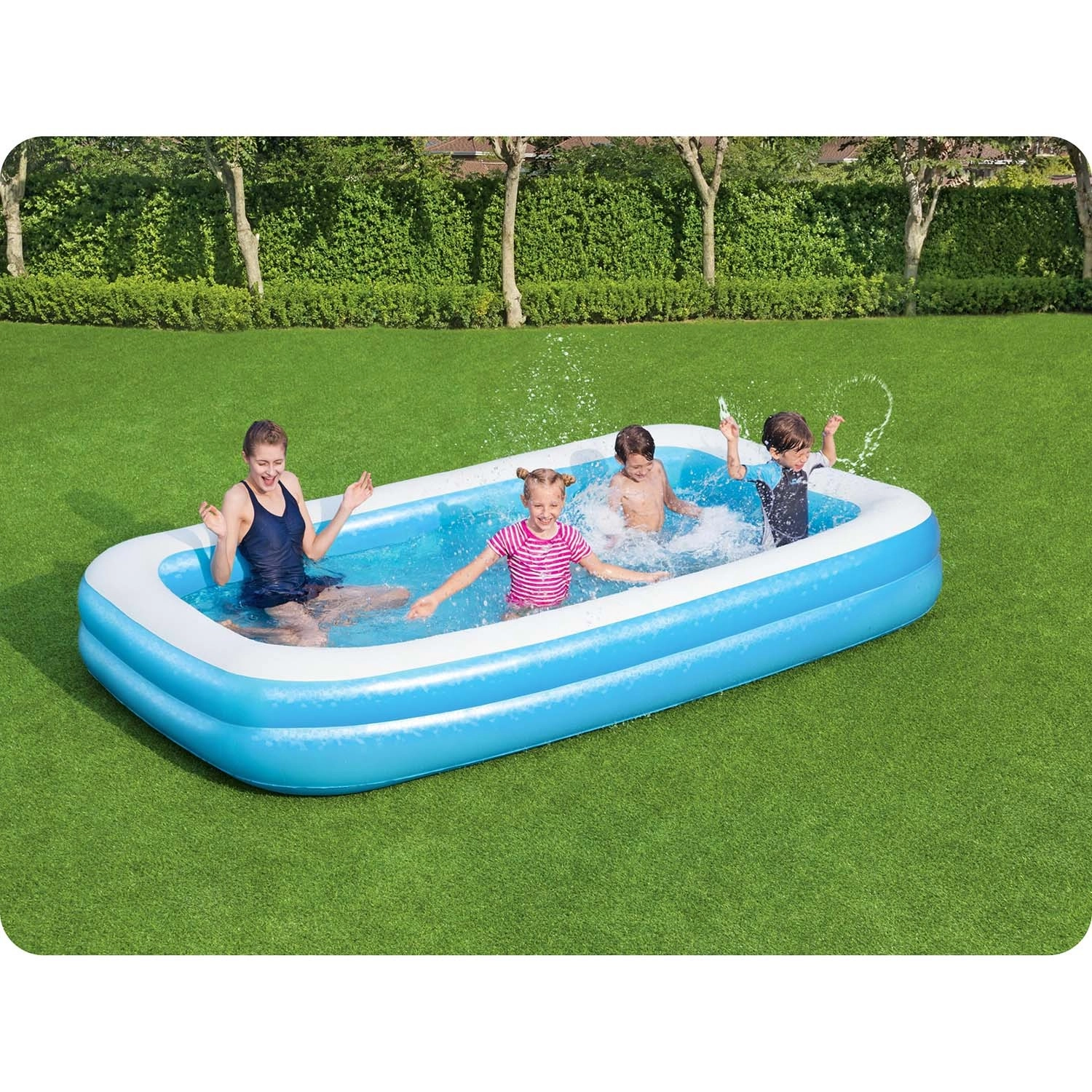 Le dimensioni 305 × 183 × 46 cm e il volume di 850 l offrono spazio sufficiente per il divertimento in acqua di bambini e adulti.
