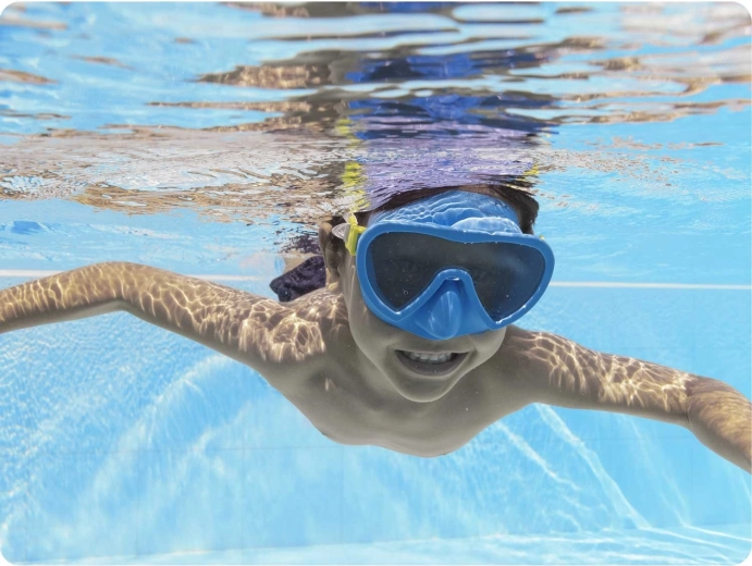 La lente resistente offre un’immagine nitida sott’acqua e protegge gli occhi dal sole – ideale per piscina e mare.