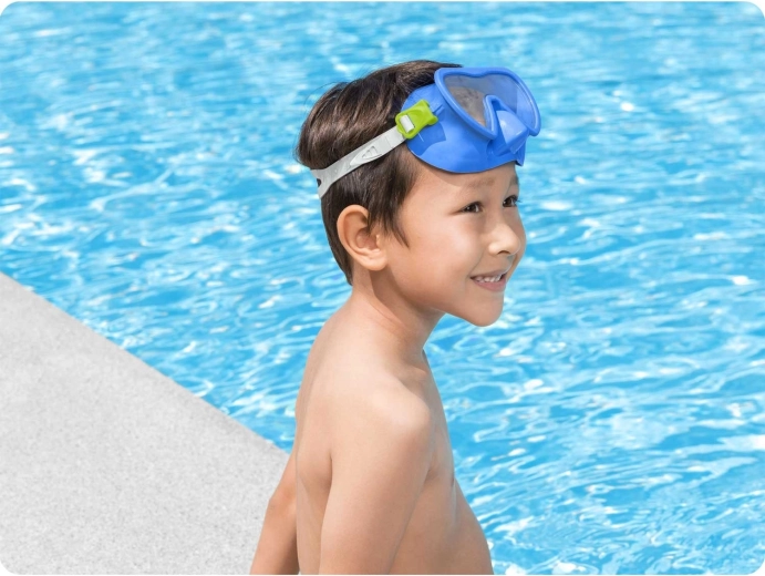 Esplora il mondo sott’acqua con la maschera Bestway, leggera e confortevole, progettata per aderire perfettamente al viso dei bambini e garantire stabilità durante il nuoto e lo snorkeling. La lente in policarbonato con protezione UV protegge gli occhi e assicura una visione chiara, mentre il ampio campo visivo permette ai più piccoli di vedere di più del mondo subacqueo.