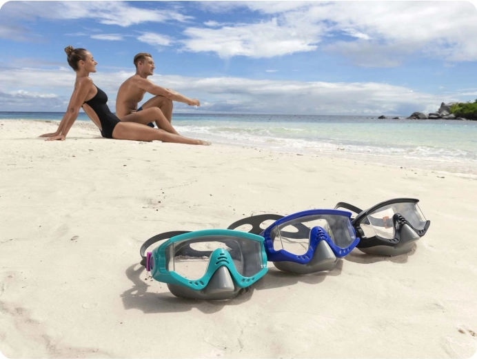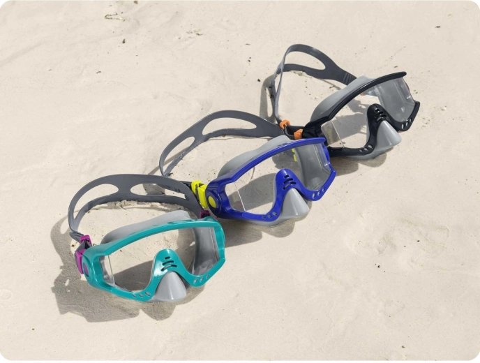 Questa maschera per il nuoto e lo snorkeling è progettata per offrire una visione chiara e stabile sott’acqua. La resistente lente in policarbonato con filtro UV protegge gli occhi dal sole e dagli urti, mentre l’ampio campo visivo ti permette di non perdere alcun dettaglio del mondo sottomarino.