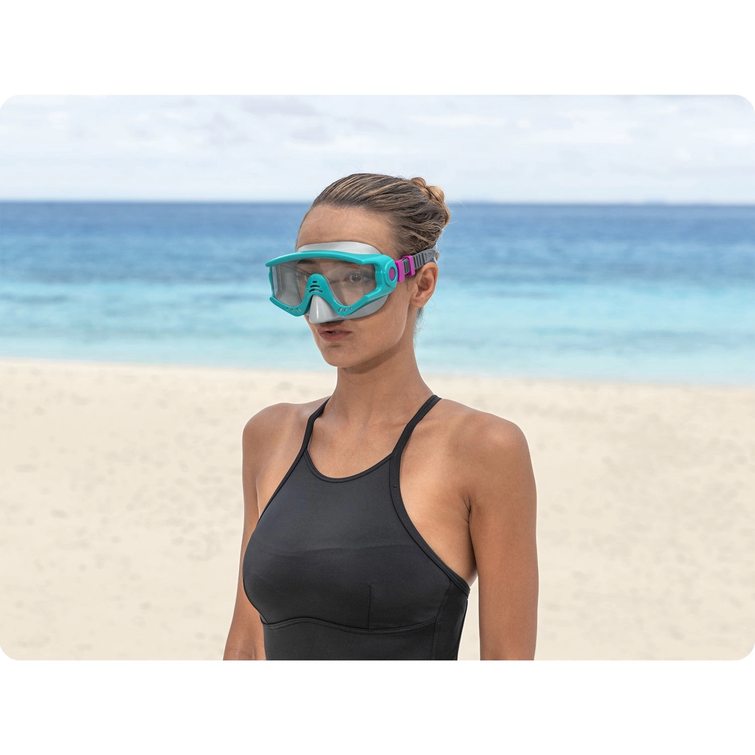 Scopri il mondo sottomarino con comfort e visione nitida. Questa maschera da sub turchese BESTWAY offre un ampio campo visivo, lente in policarbonato con protezione UV e un cinturino in silicone morbido per una calzata sicura, aderente e confortevole senza infiltrazioni. La misura universale e la struttura senza lattice garantiscono un’ottima esperienza di nuoto e snorkeling.