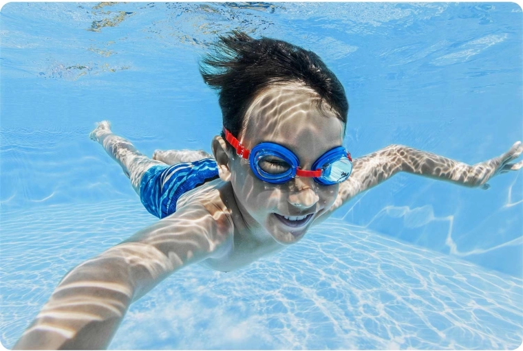 Le lenti trasparenti ipoallergeniche assicurano una buona visibilità sott’acqua e la protezione UV aiuta a tutelare gli occhi dei bambini durante il nuoto al sole.