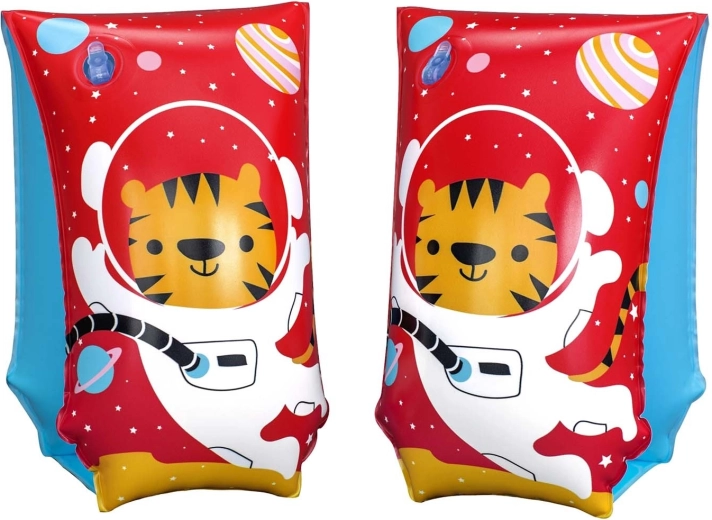 Il simpatico tigrotto astronauta e il vivace colore rosso favoriscono la visibilità e rendono il movimento in acqua più divertente.